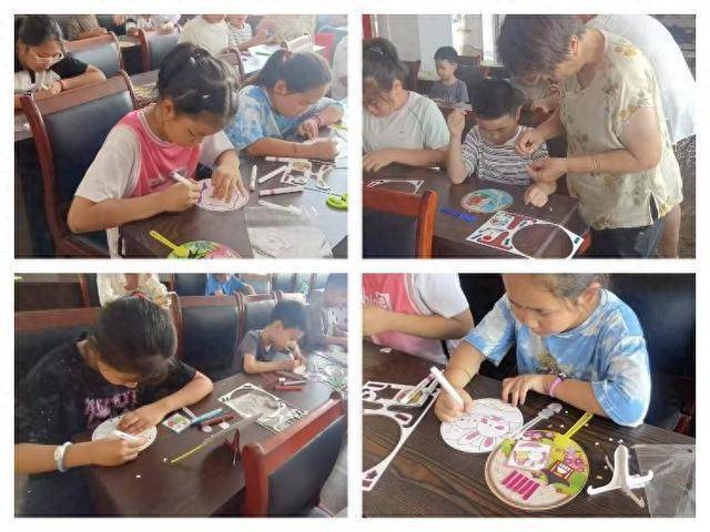 活动伊始,社区工作人员先为孩子们详细讲解了团扇的悠久历史、丰富种类以及独特文化内涵。随后社区工作人员为孩子们分发了各种图案的扇面、五彩的画笔。扇面上有可爱的小动物、诱人的苹果、高洁的兰花等图案,在家人及工作人员的耐心指导下,孩子们拿起画笔,有的给小兔子画上灵动的耳朵,有的用细腻笔触勾勒兰花的飘逸姿态......一笔一画间,童真童趣跃然扇上,活动室里不时传出欢快的笑声。当孩子们举起专属团扇时,一张张笑脸与扇面相映成趣。